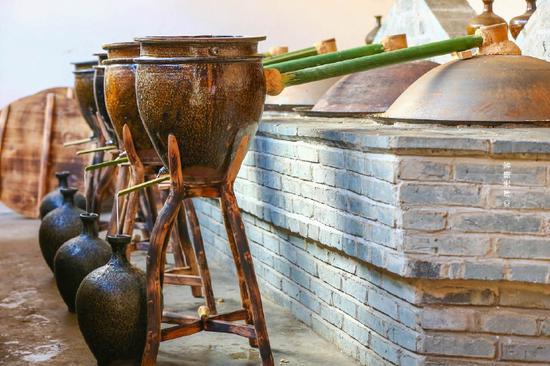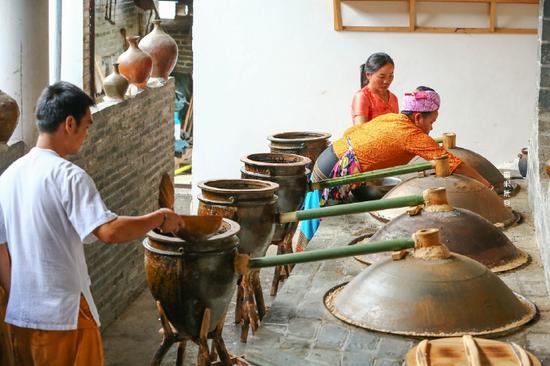 不僅是酒瓶“土”,連釀造的過程也很“土”,土灶、鐵鍋、竹筒、土陶冷卻缸。。。。。整個就是完全原生態(tài)的過程,蒸餾一鍋酒需要連續(xù)燒柴兩天一夜,耗時、耗力、還耗柴,今天這種原生態(tài)的釀酒工藝在很多地方已經(jīng)不再多見了。