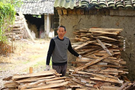 到達(dá)這個位于梁河縣河西鄉(xiāng)芒隴大橋附近的陶器作坊時,孫師傅正在將堆放在門口的燃料用小推車?yán)M(jìn)作坊里,而這些燃料看起來像是那些木頭加工廠加工后剩余的邊角料。