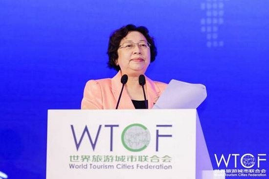 世界旅游城市聯(lián)合會理事會執(zhí)行副主席、北京市副市長王紅作主旨演講