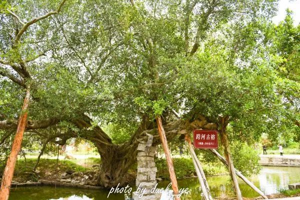 古村內(nèi)可見多株老榕,最有特色的便是這株跨河老榕。