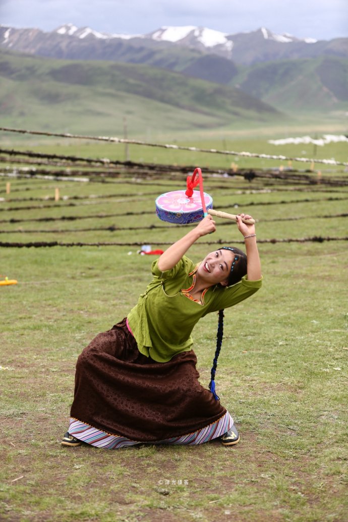 康巴女子也有自己的獨(dú)門舞蹈,一根曲棍,一面小鼓演繹出最美的草原歌舞。