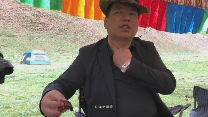 在玉樹,最傳統(tǒng)的待客美食當(dāng)然就是這種去年風(fēng)干的牦牛肉,沒有添加任何調(diào)味料,也未經(jīng)烹制,在自然下風(fēng)干,在主人的盛情下,我也用刀子割了一塊,味道還真不錯(cuò)。