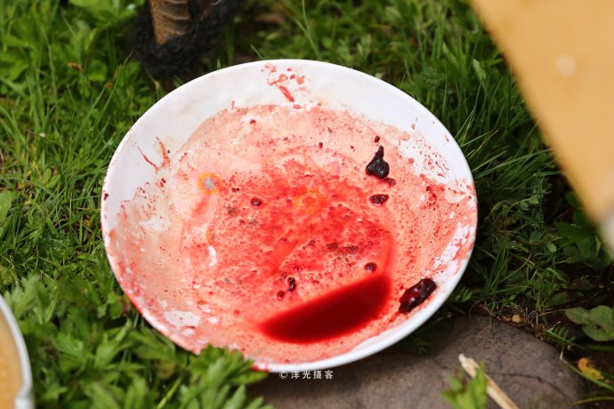 看著他們吃完后留下的這血跡斑斑的盆子,那種感覺。。。。。。朋友們,你們敢吃這道尊貴的藏家美食嗎?