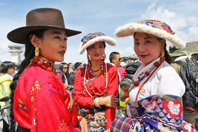 玉樹藏族的傳統(tǒng)服飾風(fēng)格獨(dú)特,形式多樣,色彩鮮艷,精巧華美,這里的服飾比別的藏區(qū)顯得更華麗,帶有濃郁的地區(qū)特色。每當(dāng)貴客臨門時(shí),他(她)們都會把這些傳統(tǒng)的服飾穿起來,用自己的熱情迎接客人。