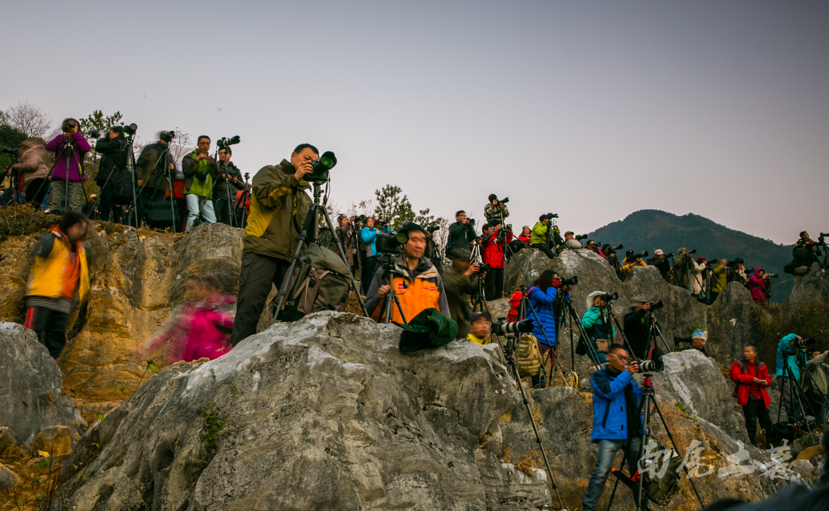 程村和戴村之間隔著的這座巨大石灰?guī)r小山坡,就是當(dāng)?shù)厝朔Q為石城山的,這個(gè)山坡是拍攝程村晨霧的最佳攝影點(diǎn)?;仡^看一眼,人山人海,像戰(zhàn)斗的部隊(duì),都不知道他們是從哪些旅館客棧里出來的。