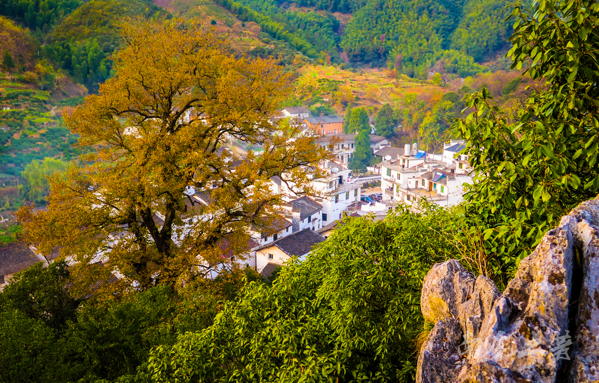 讓人驚嘆的幾十棵楓樹,每棵樹高都在30多米以上,遠(yuǎn)遠(yuǎn)蓋過村里的高矮屋頂,楓樹林中還有山櫻花,楠木,紅豆杉,杭州榆,糙葉樹,槐樹等交錯(cuò)其間。太陽的光輝穿透高大的古樹,形成奇妙的明暗光影,隨便拍一張,便是一幅詩情畫意的夢(mèng)幻圖畫。