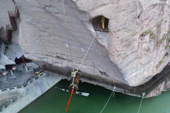 目前在龍虎山景區(qū),在瀘溪河的江面上,也有一個(gè)懸棺安葬的模擬表演,名為“升棺”,只用較輕的空棺材作為表演之用,并非古時(shí)候人們安葬的真正方法。現(xiàn)在游客也熱衷于觀看這個(gè)表演,因?yàn)樵⒁馐恰吧侔l(fā)財(cái)”。