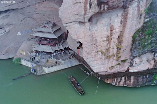 龍虎山的懸棺,下臨深潭,高懸翹險(xiǎn),洞穴朝東,鑲嵌在峭壁之上,大都離水面50米以上,甚至達(dá)200余米。這些崖墓大大小小有近200個(gè),有的是群葬,一個(gè)洞穴放置了十幾具棺木,也有夫妻葬,更多的是獨(dú)葬,據(jù)說洞里面藏著無字天書和金銀財(cái)寶。