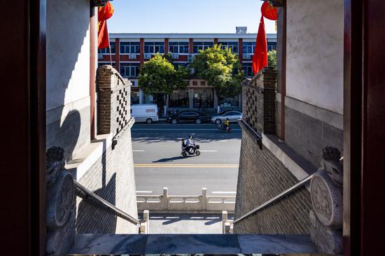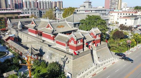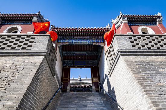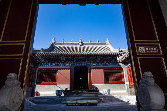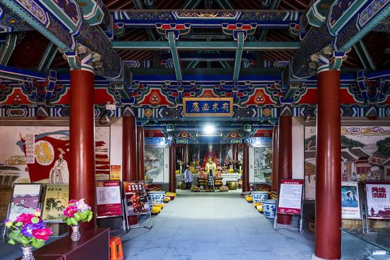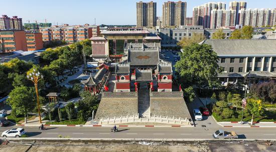 在安平縣城的為民街243號有一座古廟,坐落于四五米高的臺基之上,臺基由青磚砌就,臺基上四周砌筑了女兒墻,氣勢恢宏。臺基上的古廟建筑紅墻青瓦,古風古韻。古廟群由牌樓、碑亭、蹬道、門屋、工字殿、寢宮殿、觀稼亭6個主體建筑組成,布置在一條中軸線上,臺基最前側(cè)的鐘鼓樓左右對稱,形成了典型的中國傳統(tǒng)寺廟的布局。