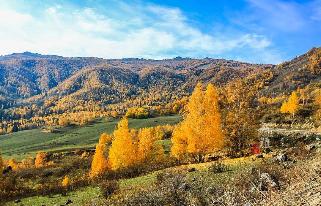 深秋時(shí)刻,在禾木村任何一個(gè)角落放眼望去,都是熱烈而明朗的金黃色。