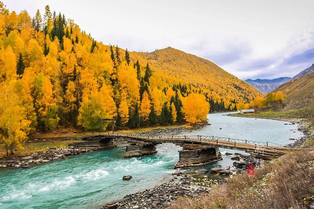 禾木的美,在于它的山村景致,小橋流水,炊煙裊裊……尤其是到了秋天,萬(wàn)山紅遍、勝似仙境,令人心醉,是一處典型的原始自然生態(tài)風(fēng)光。