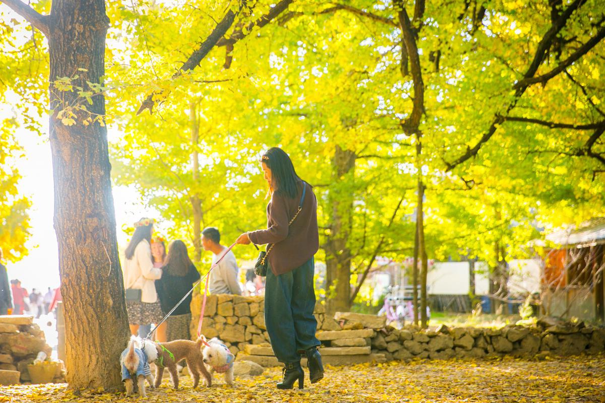狗狗也來(lái)賞銀杏葉了,我們可以看出,個(gè)性化生活的趨勢(shì)越來(lái)越明顯。