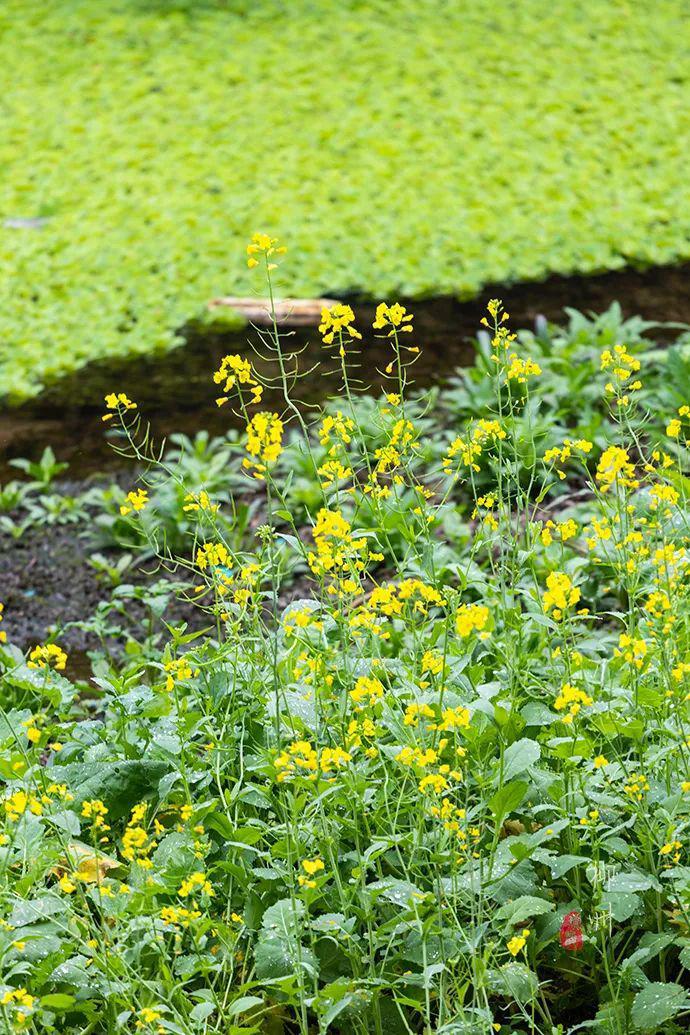 農(nóng)莊的一角,春風(fēng)拂來,菜花搖弋,仿佛大片大片的金色在流動(dòng),這黃色像是畫家隨意潑灑,卻又與春天的綠色配得極好。