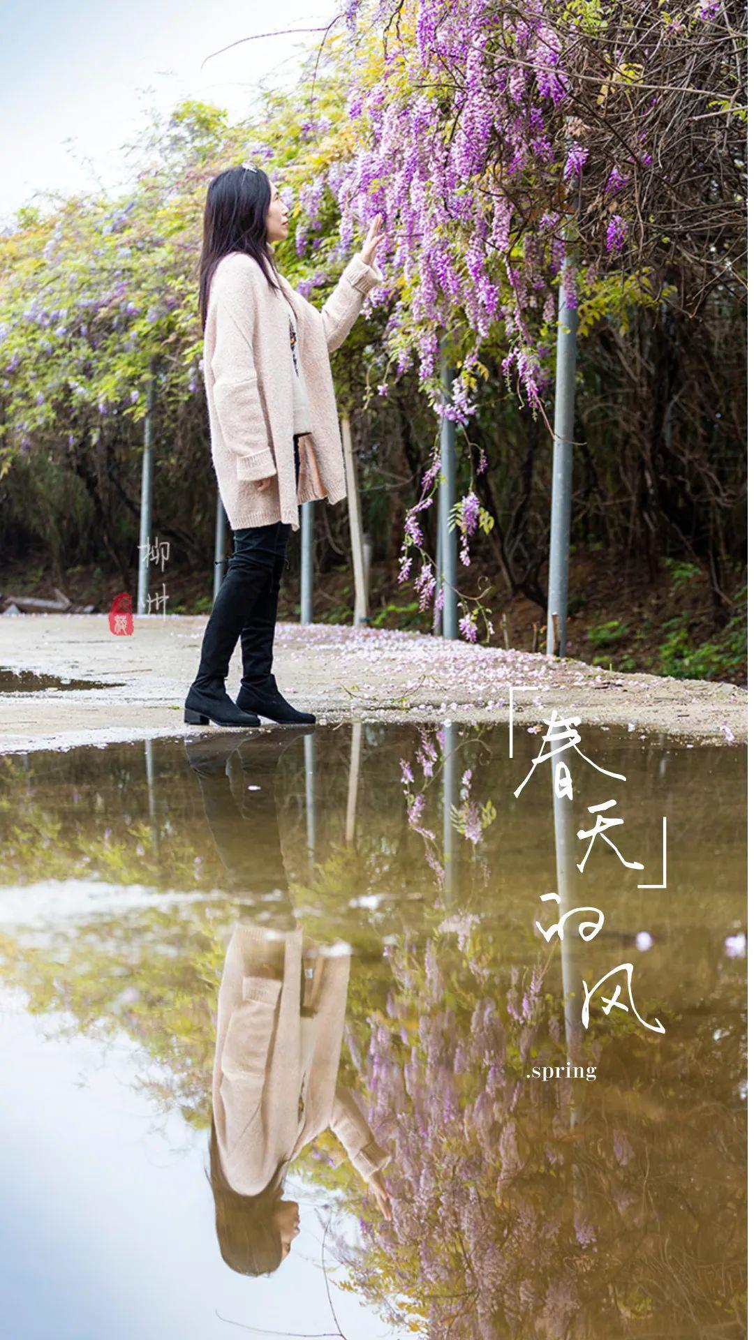 哪怕隨意的穿著,在紫藤花樹下,也能拍出大片。地面淺淺的積水,能營造出另一種獨(dú)特的氣質(zhì)。