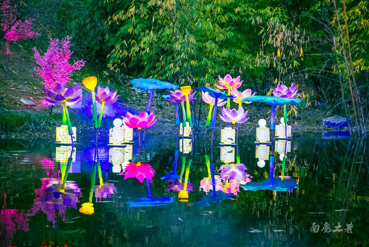 [夢幻河灣]以柔美的荷花、古典宮燈、水晶拱橋、十里桃花……在霧氣氤氳中美景交相輝映,融入真人演藝,構(gòu)成了一副唯美夢幻、晶瑩剔透的彩色水墨畫卷。