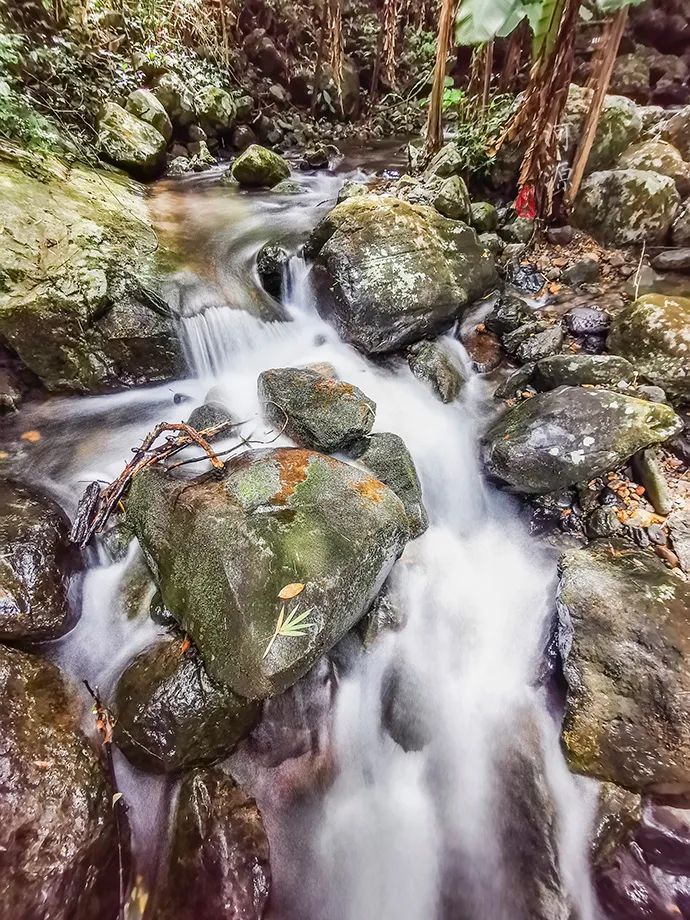 山風(fēng)是溫柔的,一陣陣拂過你的臉頰。側(cè)耳傾聽,枝葉被風(fēng)吹起的沙沙聲、遠(yuǎn)處不知名的鳥叫聲,摻雜著潺潺的流水聲,你只覺得自己好似來到了仙境一般,放松、暢快。