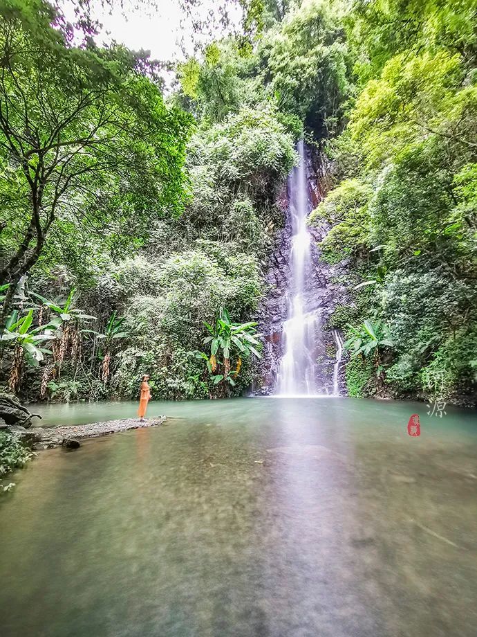 有一些瀑布,更為激昂。直接匯集了兩三股水流,似白錦奔涌而下,擊打在清潭上,發(fā)出嘩嘩的聲響,有如天籟。此時,縱觀四周,綠樹包裹起一個神奇的小世界。