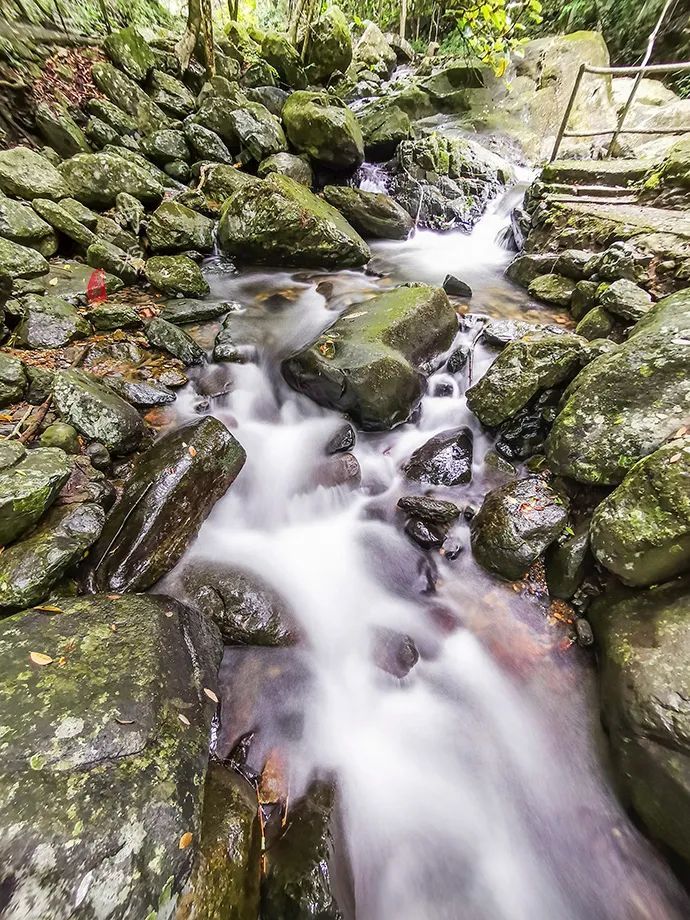 有些地方特別設(shè)計了石頭步道,可以慢慢踩著過去。倒不用擔(dān)心打濕了鞋子,夏天嘛,很快就會干的。而和自然的山山水水零距離接觸,才是更為珍貴的體驗。