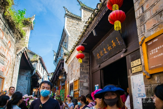 城墻僅比內(nèi)街高幾個(gè)臺(tái)階,往北走,城墻兩邊是先后建起來(lái)的民居,斜陽(yáng)灑滿了樓閣,仿佛徜徉在悠悠的舊時(shí)光。大部分的店家還沒(méi)有開(kāi)張,大批的游客也還沒(méi)有到來(lái),像是攻城略地前的寂靜。
