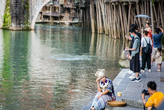 古城沱江南岸有一些臨水的埠頭,許多妹子喜歡在這些地方拍照。早年對(duì)鳳凰古城的吐槽就不提了,近期有網(wǎng)友爆出在古城租服裝拍照,不允許自己拍的事件,是不是事先沒(méi)有溝通好,或是個(gè)案,我沒(méi)有租過(guò)服裝,不敢亂發(fā)言,古城經(jīng)過(guò)整治,取消了大門(mén)票,進(jìn)出自由,從容的氣質(zhì)出來(lái)了。但是要改變多年來(lái)形成的營(yíng)商習(xí)慣,估計(jì)還有一段路要走。