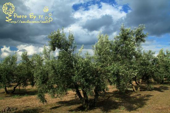 旁邊一棵棵橄欖樹(shù),在云朵下有點(diǎn)夢(mèng)幻的感覺(jué)。