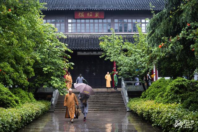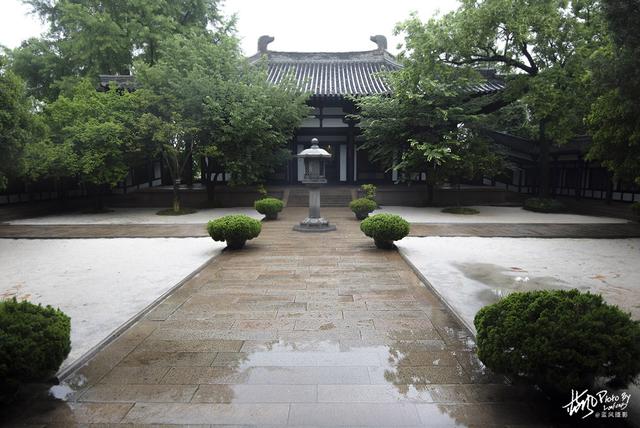 雨中的大明寺更顯清秀,掛在枝頭的雨珠似珍珠一般,晶瑩剔透。唐天寶二載,大明寺律學(xué)高僧鑒真大師應(yīng)日本僧人榮睿、普照的邀請(qǐng),為弘揚(yáng)佛法,首次籌劃東渡日本。其后歷經(jīng)十年艱險(xiǎn),先后五次失敗,終在唐天寶十二載,也就是日本天平勝寶五年?yáng)|渡成功。