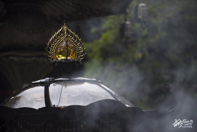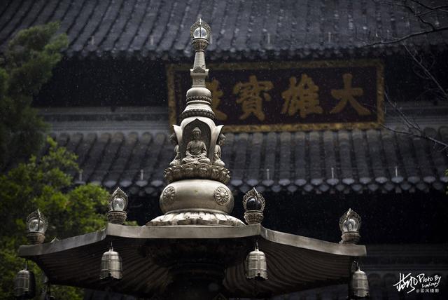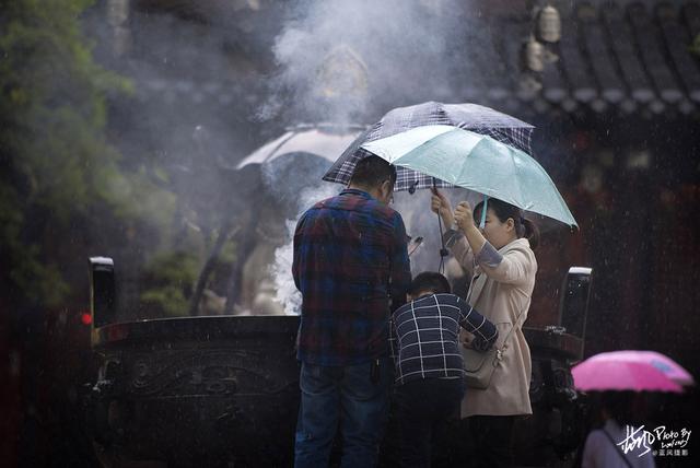 大雄寶殿前面,盡管下著雨,香客仍絡(luò)繹不絕。