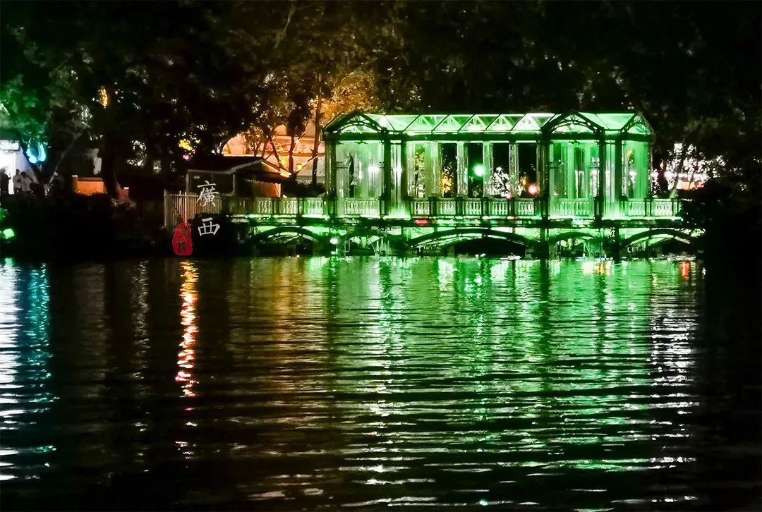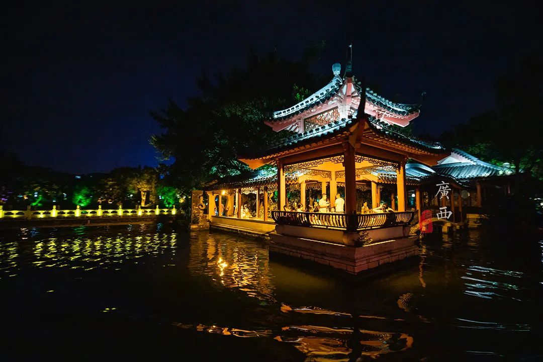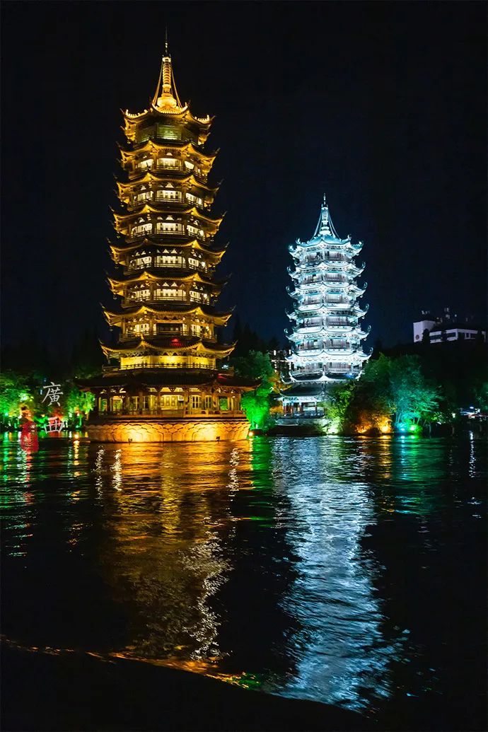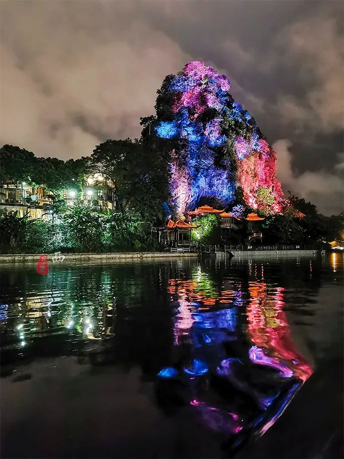 想不到吧,華燈初上的時(shí)分,桂林的山山水水都籠上了一層朦朦朧朧。一眼看去,流光溢彩。吹著晚風(fēng)、乘著小船,亭臺(tái)樓閣、繁蔭佳木,這些白日里的景色顯得更加令人迷醉。