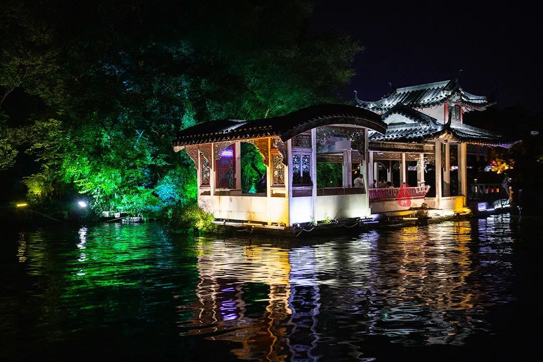 船型比較多,可以自由選擇。豪華型的船頂棚是透明玻璃材質(zhì),可以最大限度觀景。普通型都是硬座,但勝在性價(jià)比高。輕舟可以品茶、賞月,滿足個(gè)性定制等等,價(jià)位也都不同。夜游時(shí),甚至湖上的小船也變成了一道亮麗風(fēng)景。